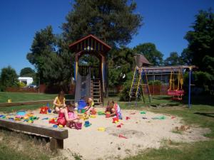 Kinder gibt es einen Spielplatz mit Schaukel und Sandkiste und natürlich